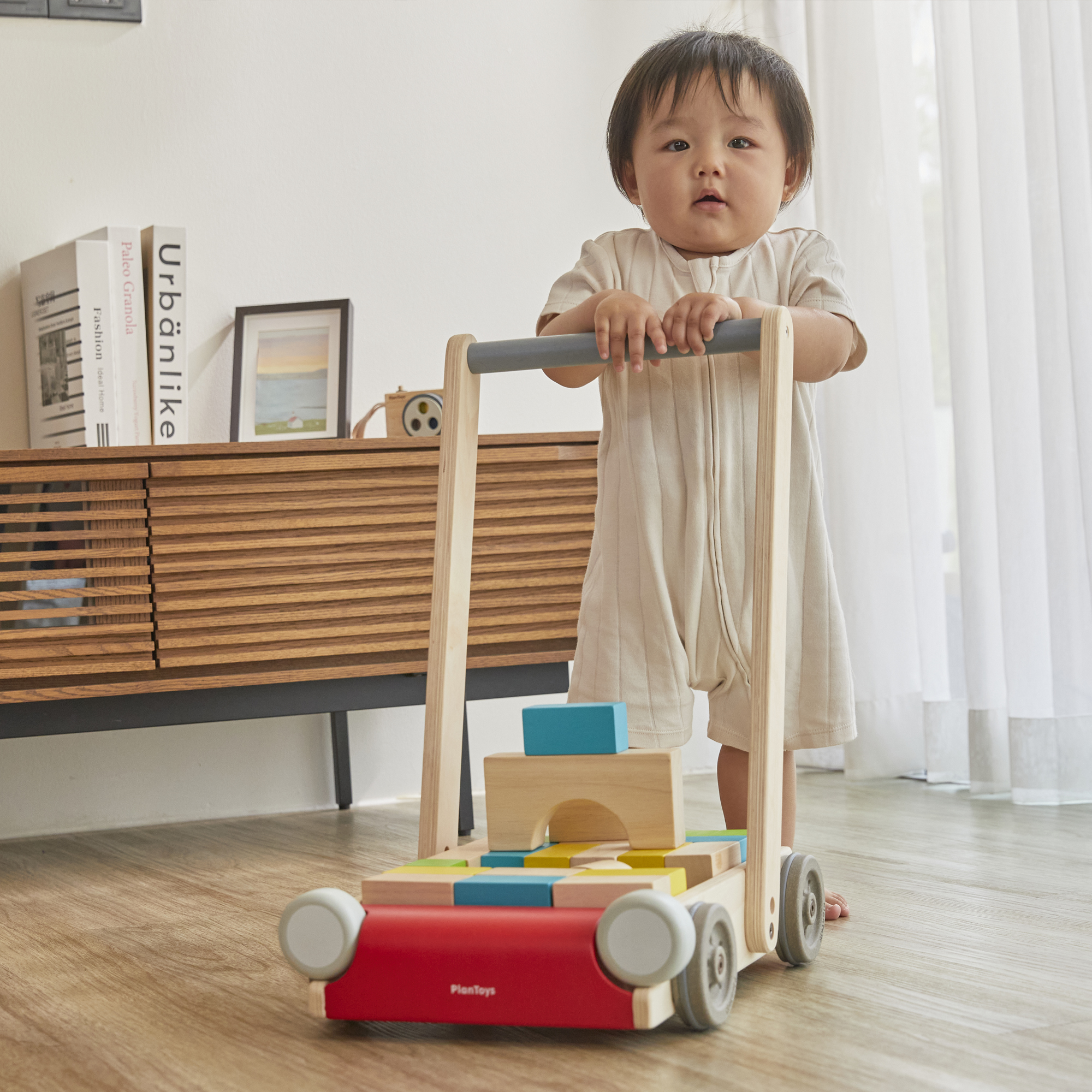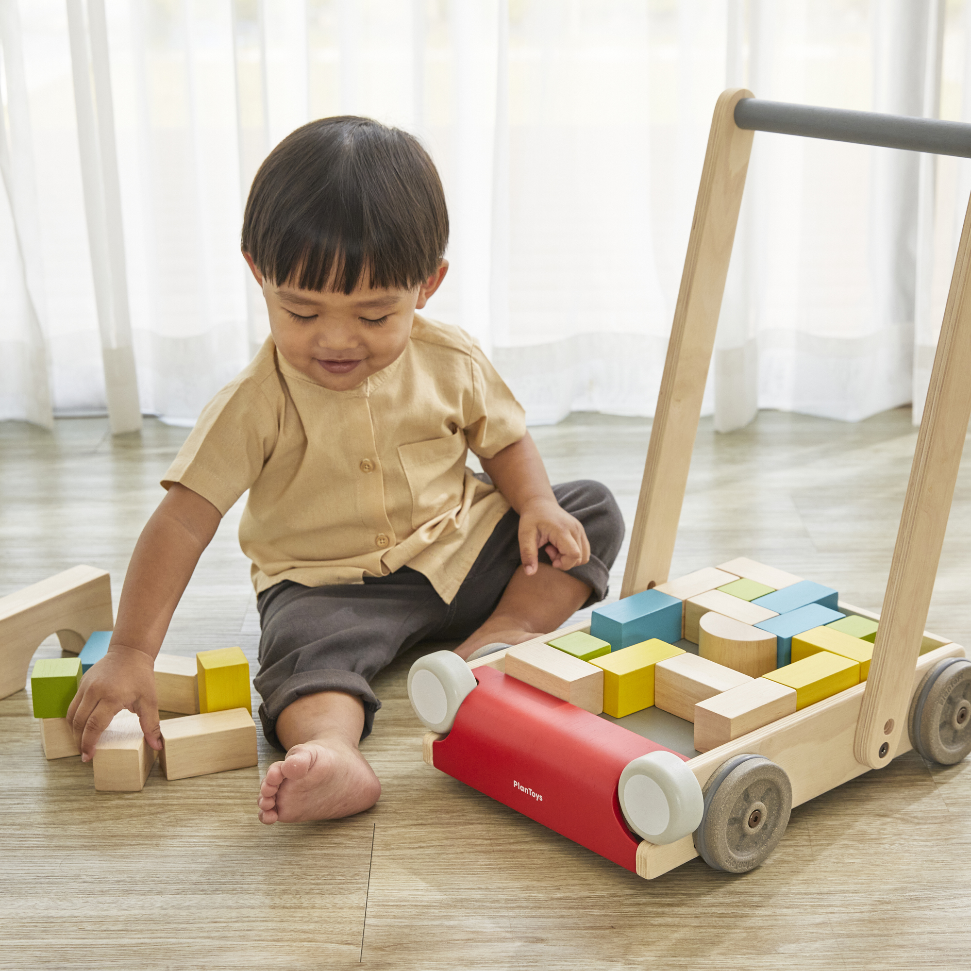 הליכון עץ עם קוביות לתינוקות מבית PlanToys – הצעד הראשון בדרך לעצמאות