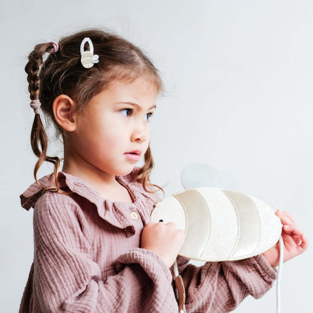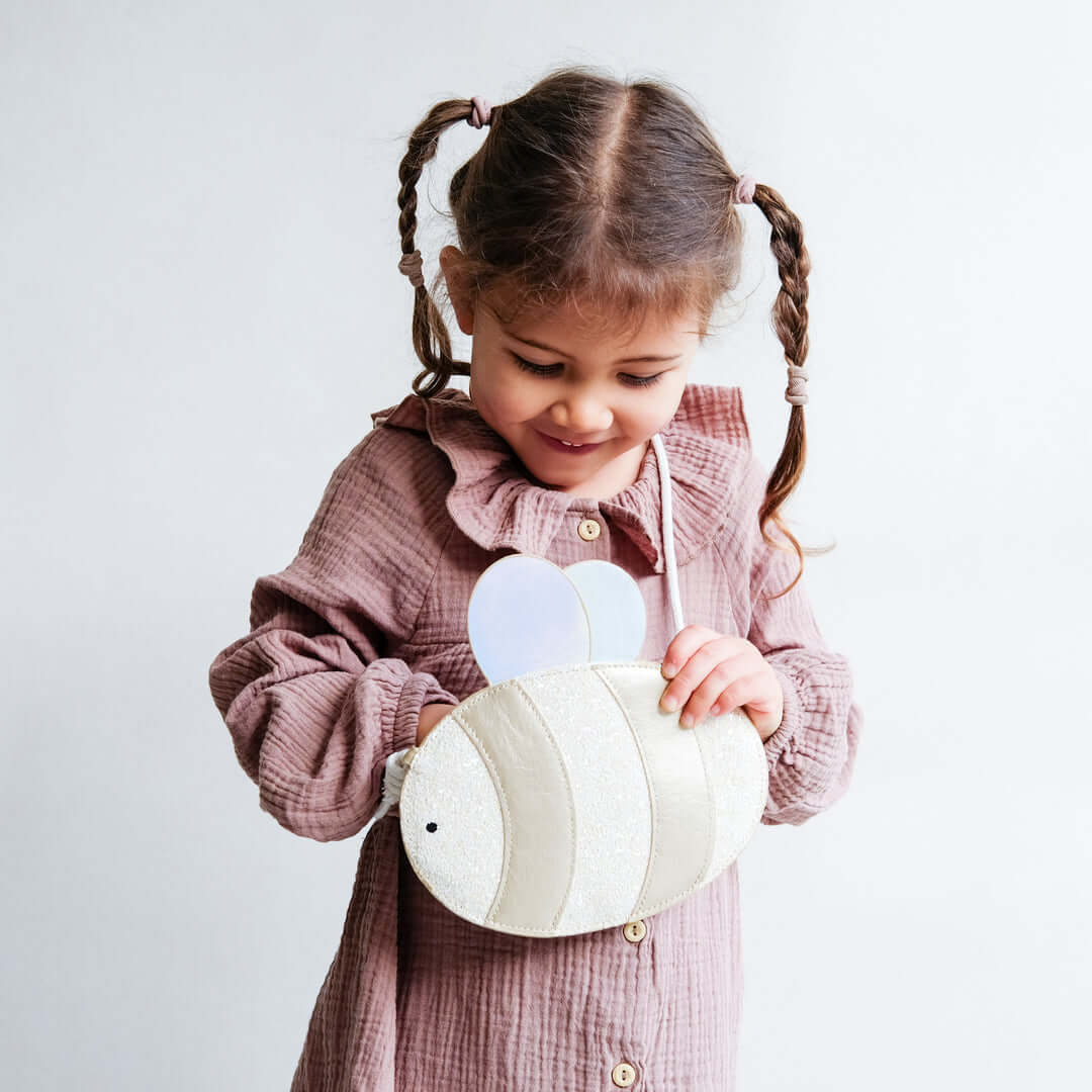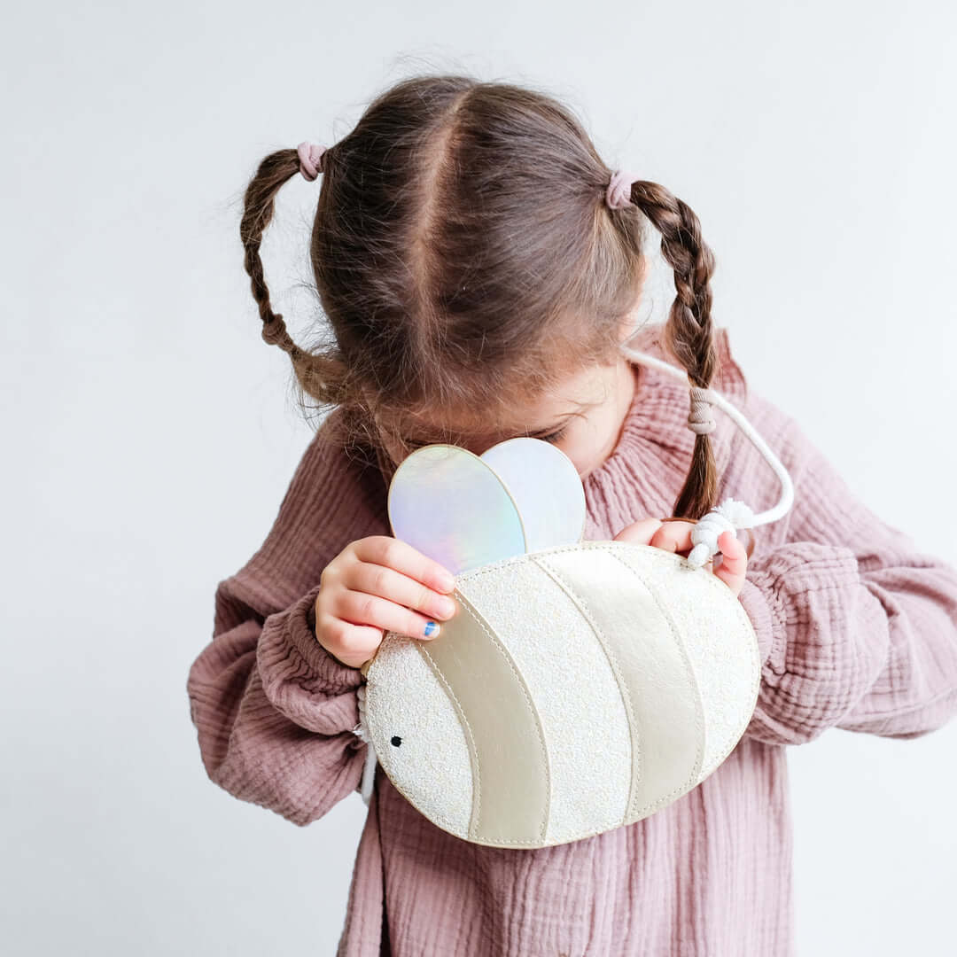 רצועת עור זהב מתכתי, קשקשים עשויים מבדי נצנצים מנוגדים, מתכתיים ובדי עור פשוטים בפלטת צבעים רכה להפליא