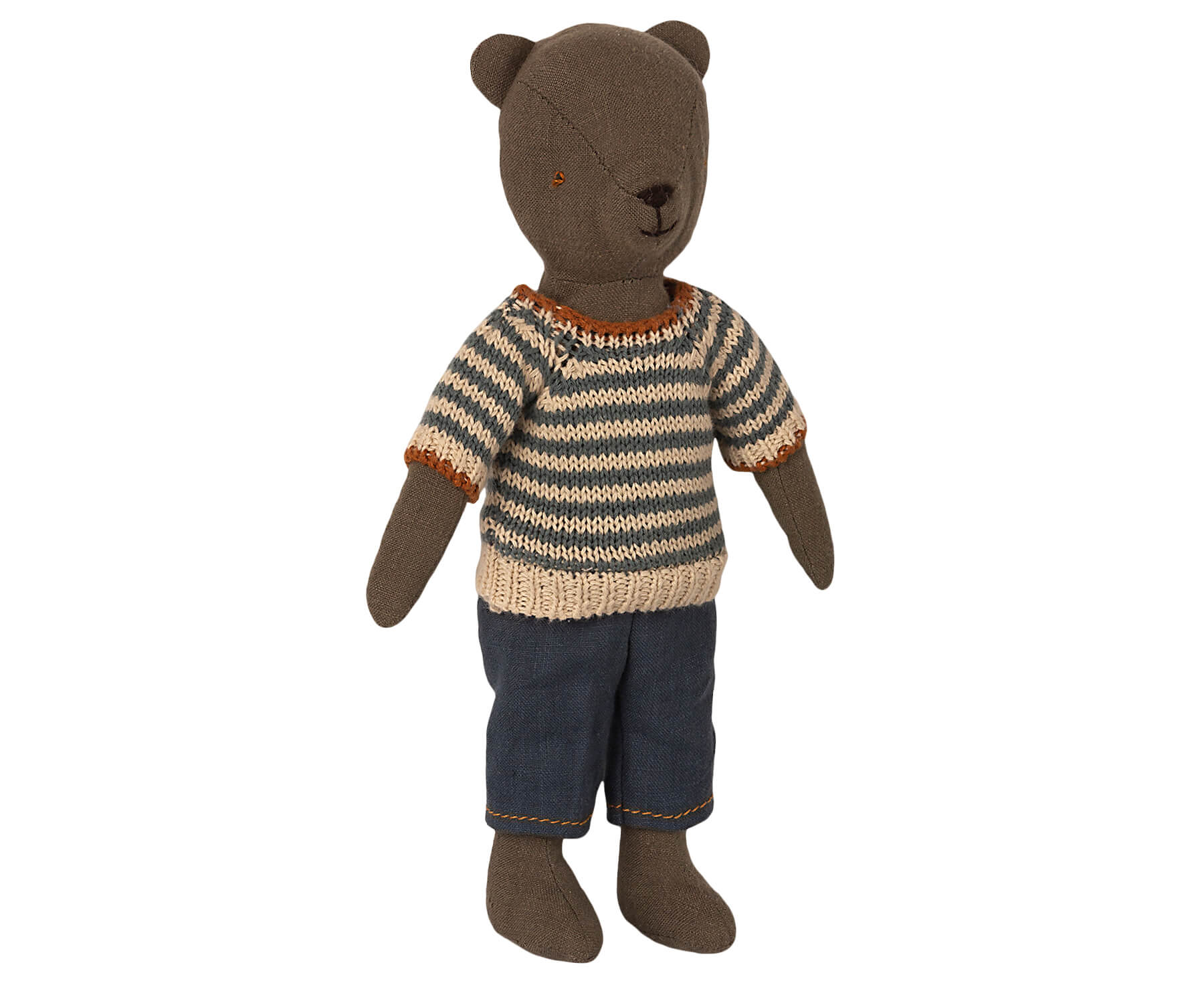 סט בגדים יפה שמתאים לאבא טדי בצורה מושלמת. פריט זה כולל זוג מכנסיים וסוודר סרוג רך.