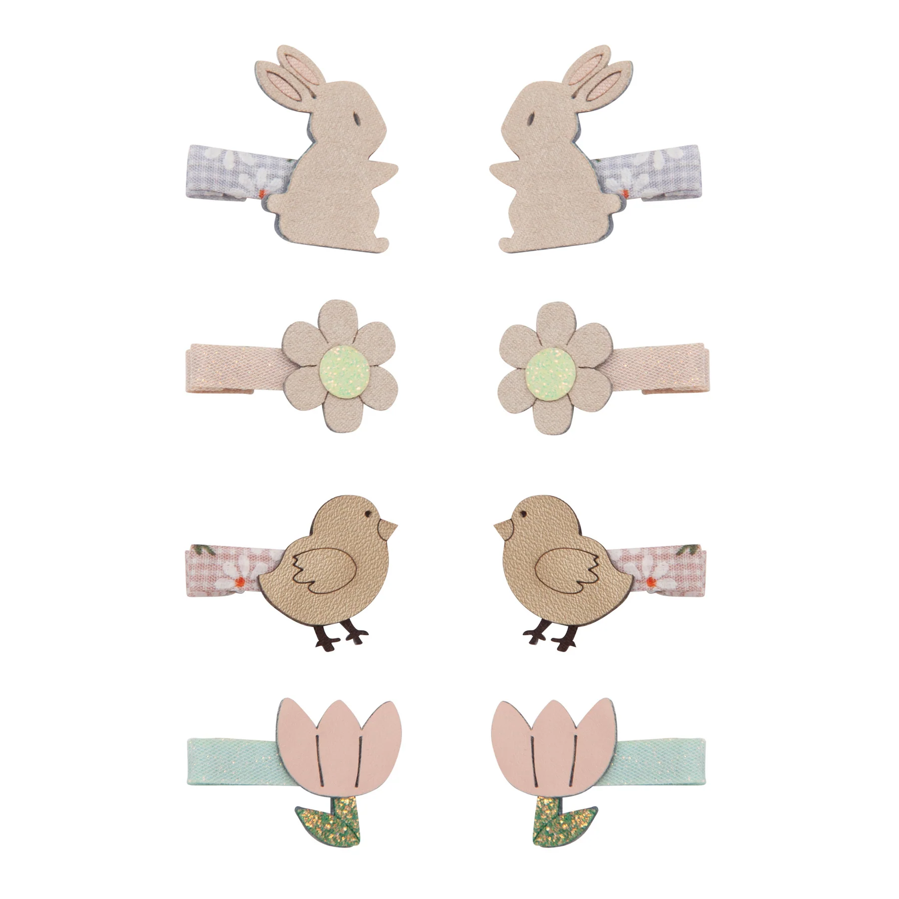 ארנבות, חינניות, אפרוחים וצבעונים, כולם עשויים בקפידה מתערובת יפהפייה של בדים רכים מזמש, מתכתיים ונצנצים.