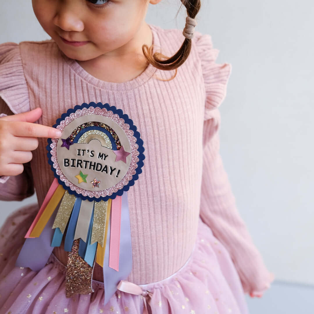 גימור עם שכבות של סרטי סאטן, גרוס גריין וגליטר במגוון צבעי הקשת.