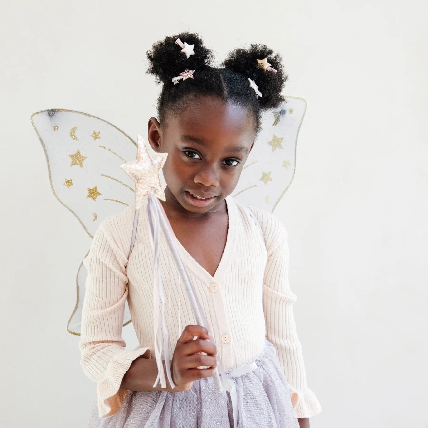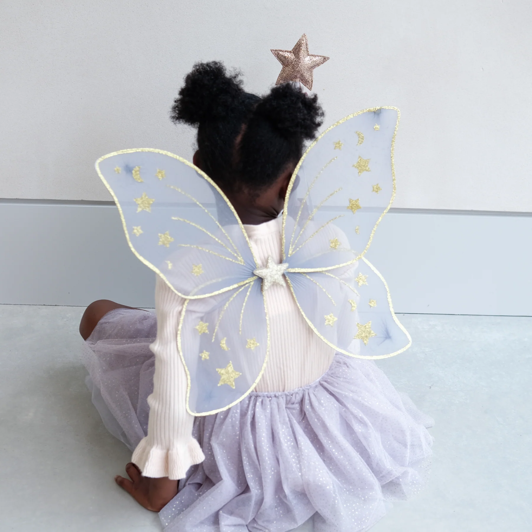 בצבע אפור חיוור יפהפה מפוזר ירחים וכוכבים נצנצים מוזהבים