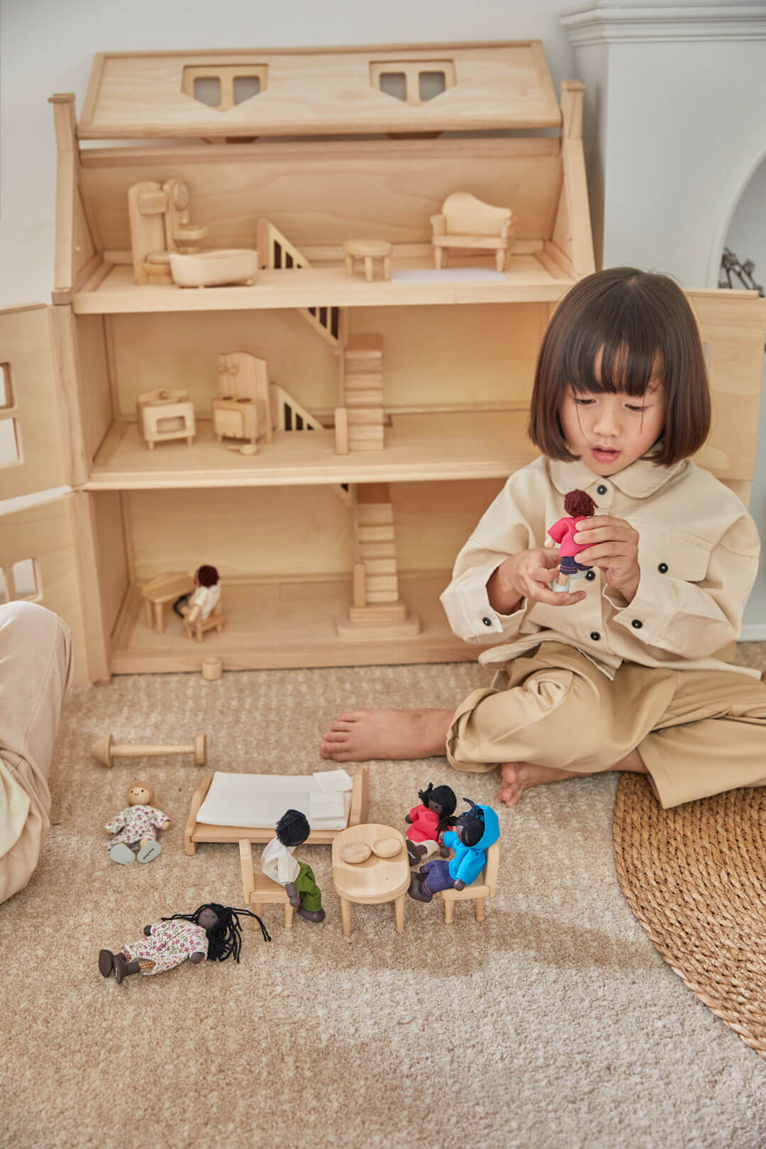 השילוב בין גוונים רכים, קווים מעוגלים ופרטים קטנים הופך כל חדר לבית חי ונושם – מושלם לבובות ולמשחקי דמיון ארוכים.